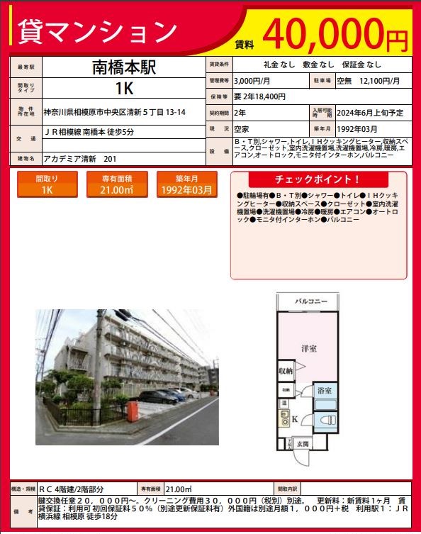 | 築年月日 | 1986年6月 | 最寄駅 | 相模原 |