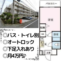 ・駐輪場あり ・バストイレ別/シャワー付き ・オートロック♪ ・モニター付きインターホン♪ |
