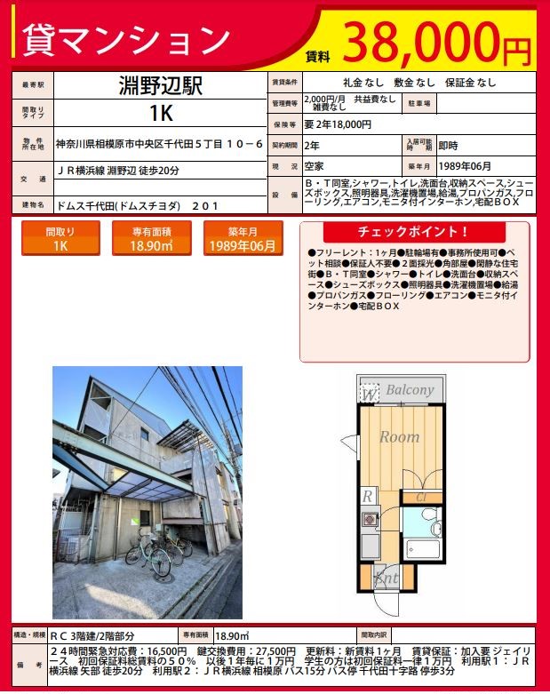 | 築年月日 | 1989年6月 | 最寄駅 | 淵野辺 |